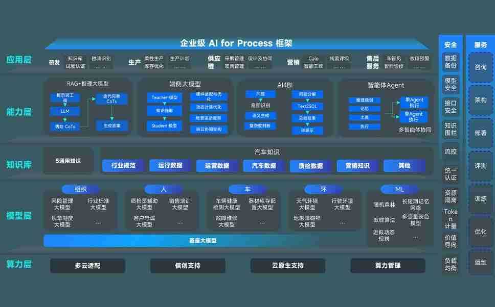 端到端的一站式AI工作空间深度融合了从企业战略规划到日常经营的全流程业务板块,,,定向解决车企内部领域多、、、、部门多、、链条长、、场景碎片化等难题,,,,支持车企快速构建以AI为核心的生产力写作体系,,实现任务执行与AI能力的无缝集成与交互
